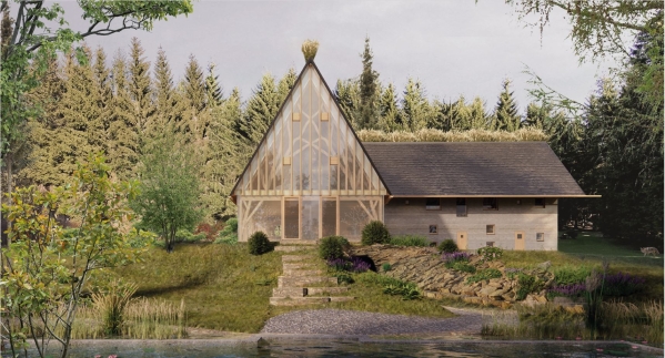 Ve stínu zříceniny středověkého hradu, v těsném sousedství památkově chráněné roubenky. Jen přes louku od údolí Divoké Orlice. Jak by měla novostavba domu v téhle...