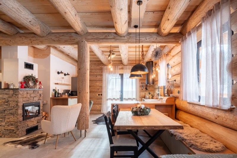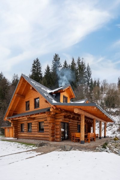 Konstrukce z masivního dřeva pocházejícího ze zimní těžby (smrk, jedle, modřín, borovice, douglaska).