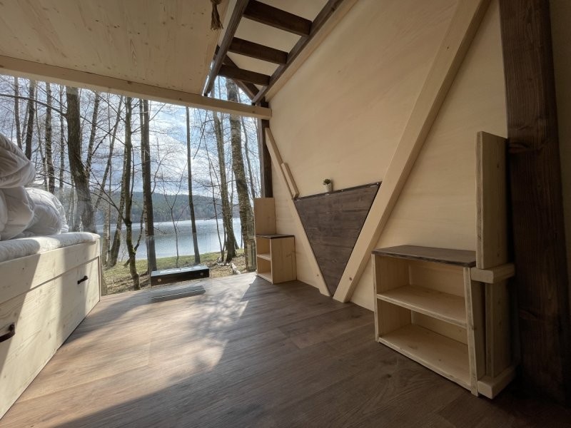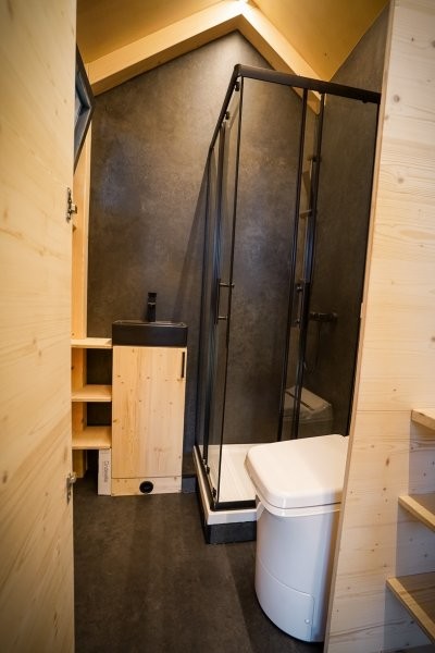 Výrobce si zakládá na prémiovém provedení stavby z materiálů nejvyšší kvality. Izolovaná dřevěná konstrukce je opláštěna sibiřským modřínem a interiér překližkou/ biodeskou v pohledové kvalitě ošetřenou olejovou lazurou. Dveře a okna s bezpečnostním lepeným sklem jsou vyrobena z bezúdržbového hliníku. Ručně a precizně vyrobené je také všechno dřevěné vybavení domku. V interiéru nechybí vybavení jako vytápění, lednice, vařič a koupelna s WC.