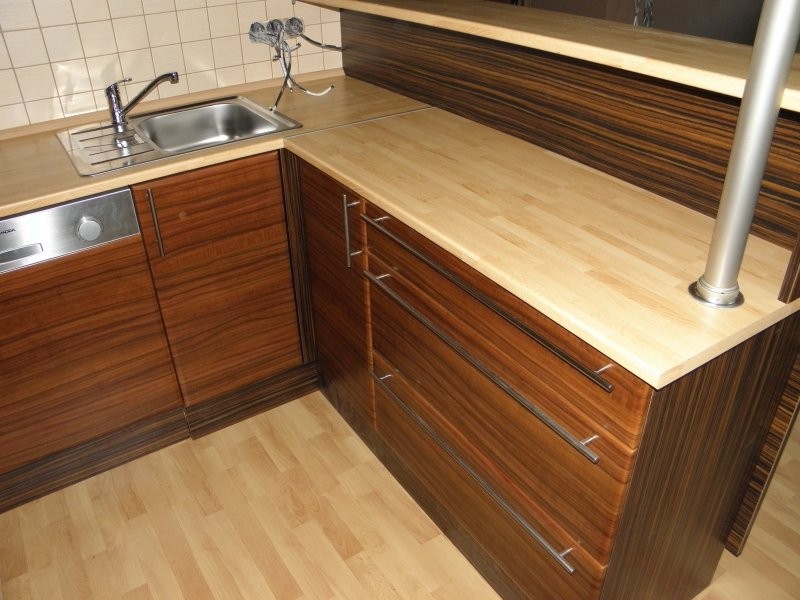 - Pro výrobu kuchyní používáme laminované desky různých dekorů od českých výrobců DDl a Kronospan.