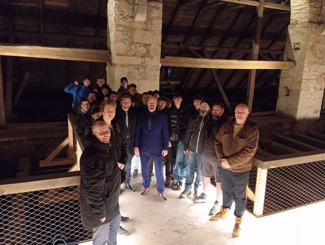 obr.: Žáci mají možnost se díky různým exkurzím dostat na inspirativní místa pro svůj obor – jako například během exkurze v katedrále sv. Bartoloměje, kde mladí tesaři zhlédli dřevěné konstrukce z roku 1528. Foto: ARCHIV ŠKOLY