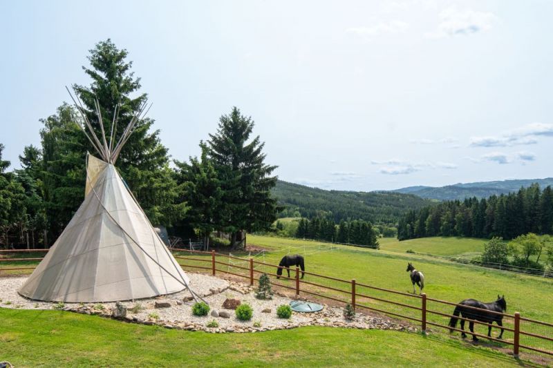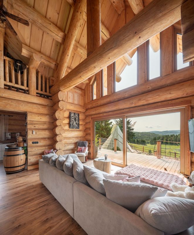 Moderní roubenka v trampské osadě