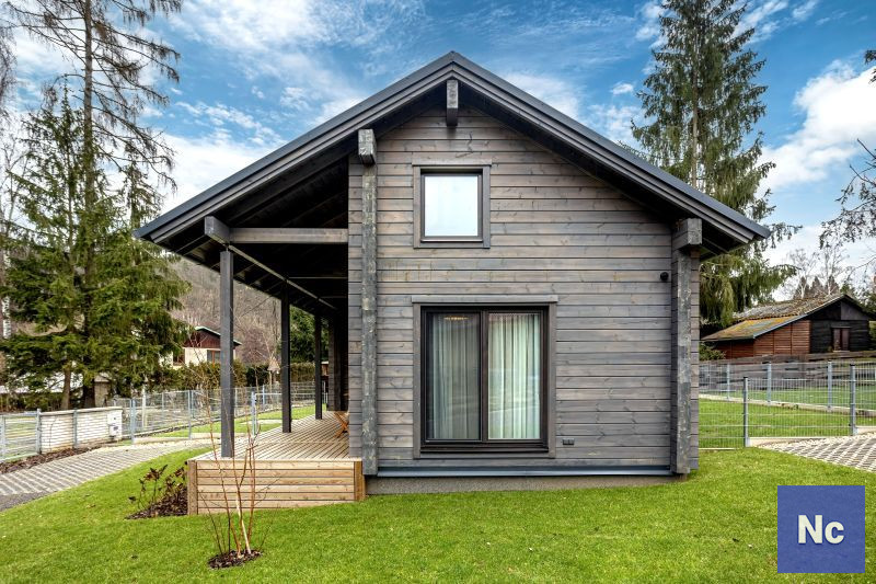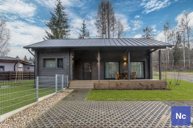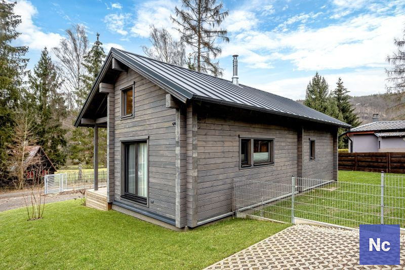 Konstrukční systém: celoroubená konstrukce Kontio lepený hranol 180 × 170, vnitřní příčky sloupkové s opláštěním palubkami ve stejném profilu jako trámová stěna, izolace střechy mezi krokve, plechová střešní krytina Ruukki