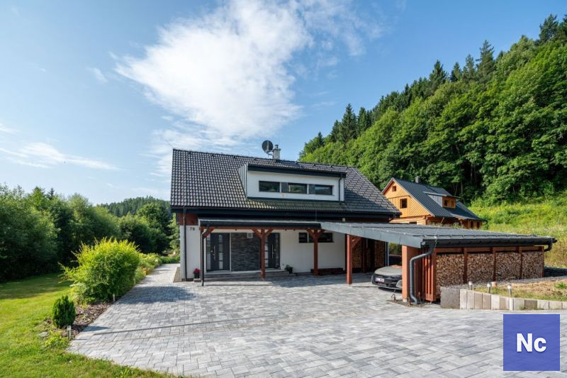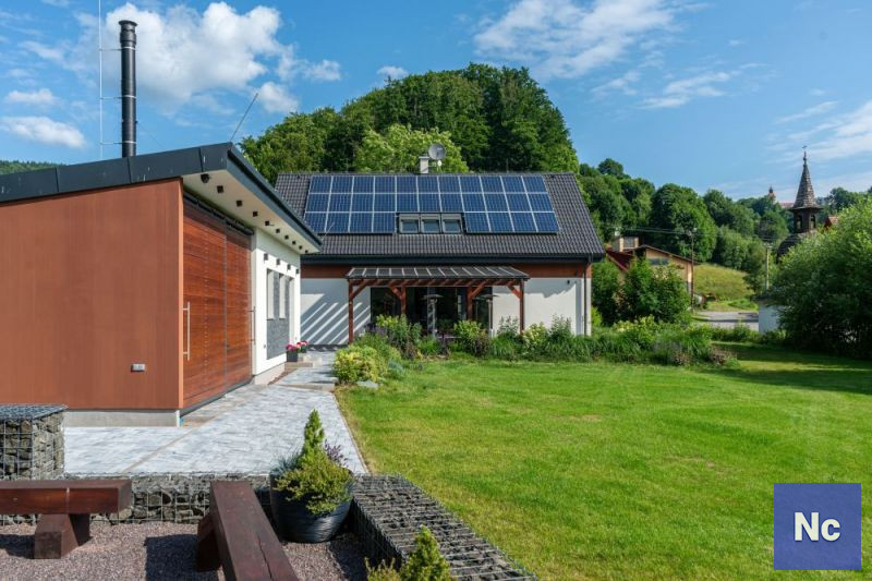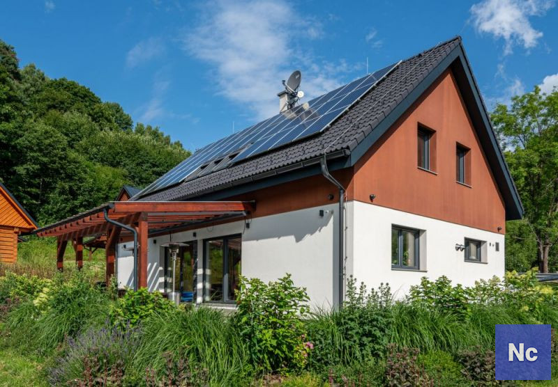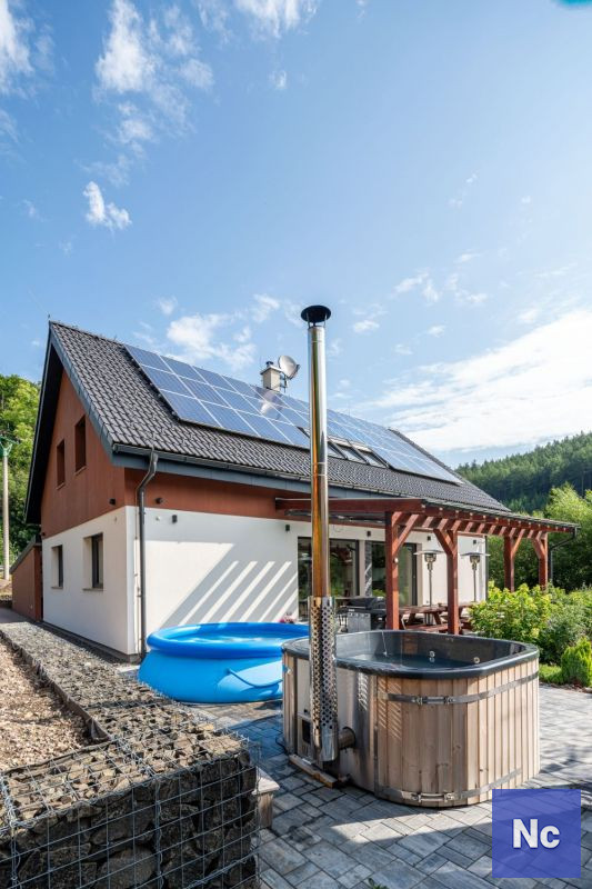 • Zdroj energie / teplo: fotovoltaické panely, tepelné čerpadlo vzduch--vzduch, podlahové topení, kamna na tuhá paliva