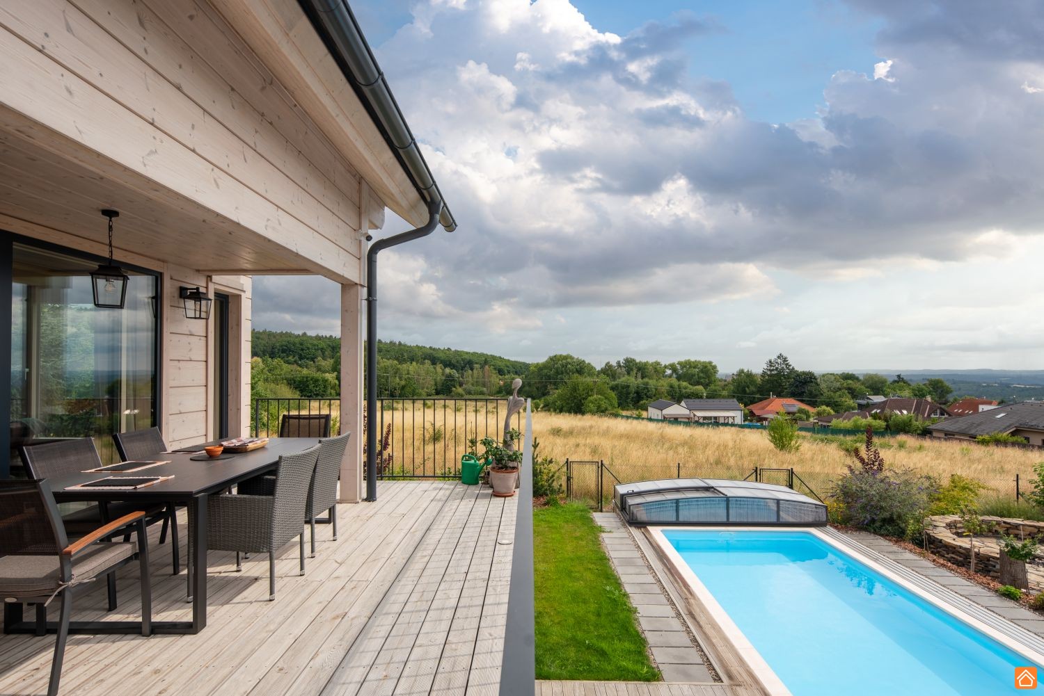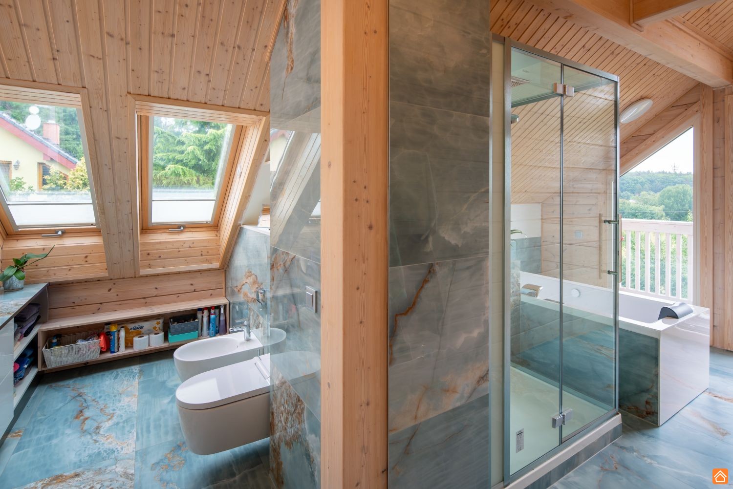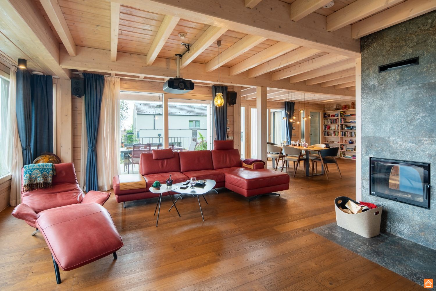 • Zdroj energie / teplo: podlahové vytápění, tepelné čerpadlo vzduch-voda, doplňkově krbová kamna