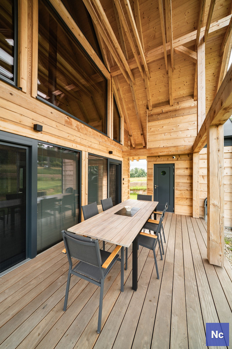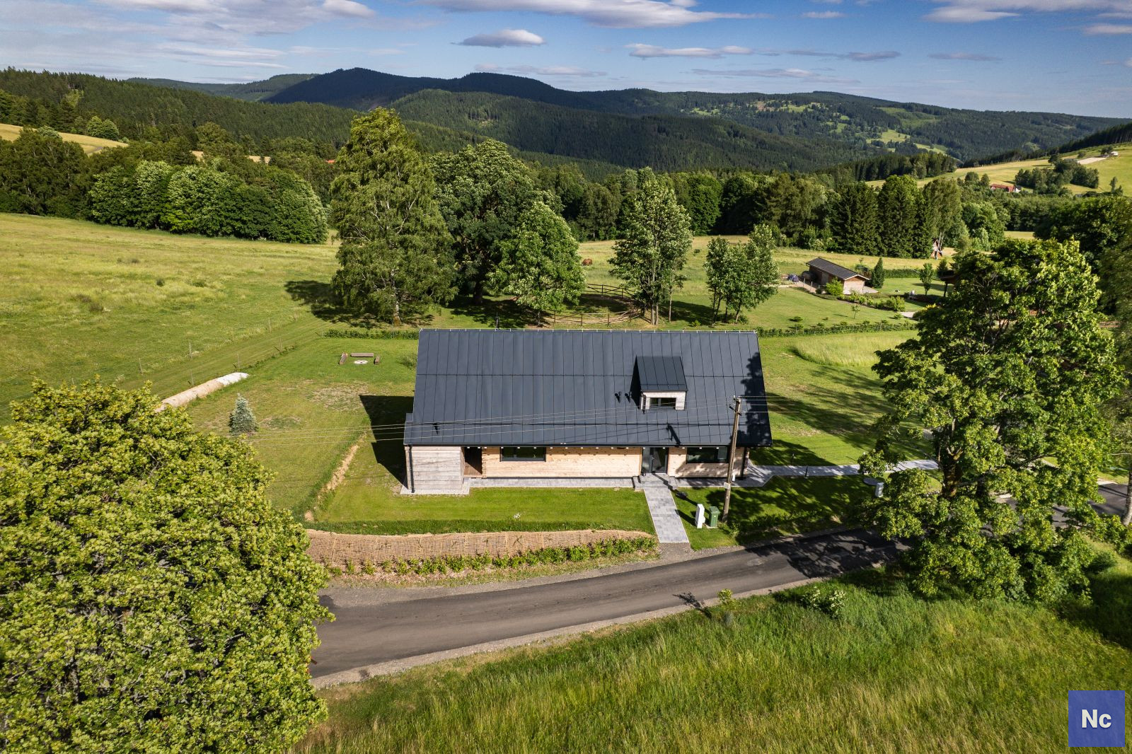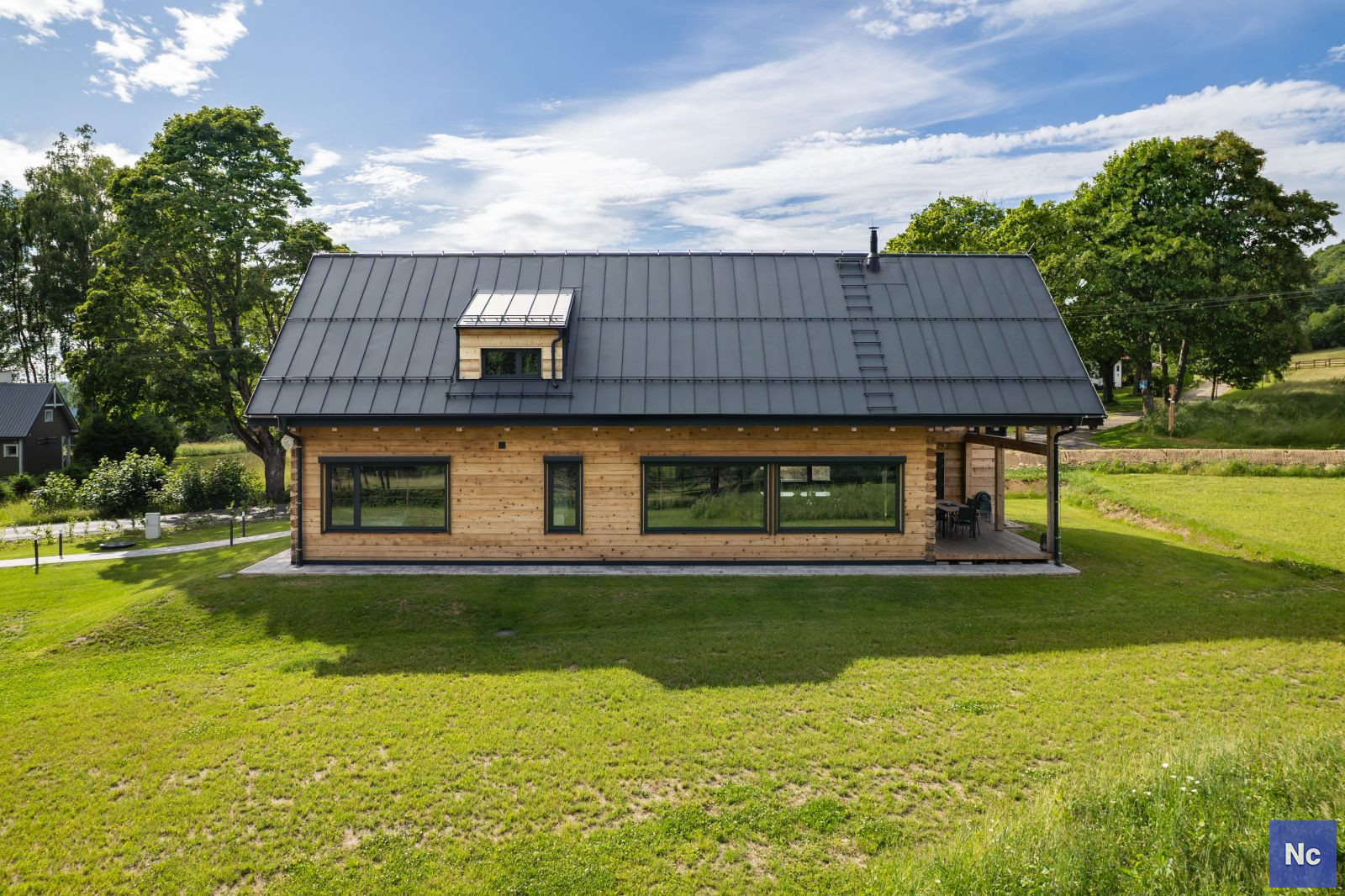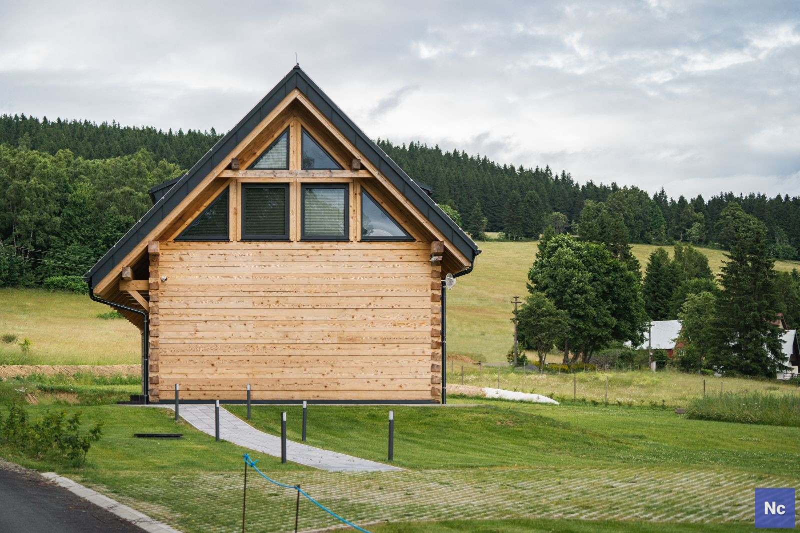 • Konstrukční systém: obvodové stěny z masivního cedrového dřeva, zděná část z cihel Porotherm