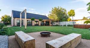 Přáním majitelů byl velmi jednoduchý, bezbariérový dům s důrazem na praktičnost, velký prostor denní zóny a jeho propojení s exteriérem. Prostě žádná složitá řešení, dostatek soukromí a maximum bezpeč