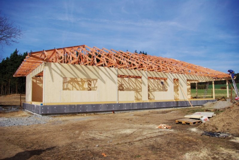 - RYCHLOST VÝSTAVBY - Konstrukce se skládá jako stavebnice. Všechny komponenty se vyrábějí v přesných formátech s vybraným opracováním spojů, s otvory pro okna a dveře a s dalšími individuálními úpravami, jako příprava tras pro rozvody či doplnění izolací. Hotové komponenty jsou expedovány přímo na staveniště, kde se z nich za pomocí jeřábu sestaví během několika hodin celý objekt.
