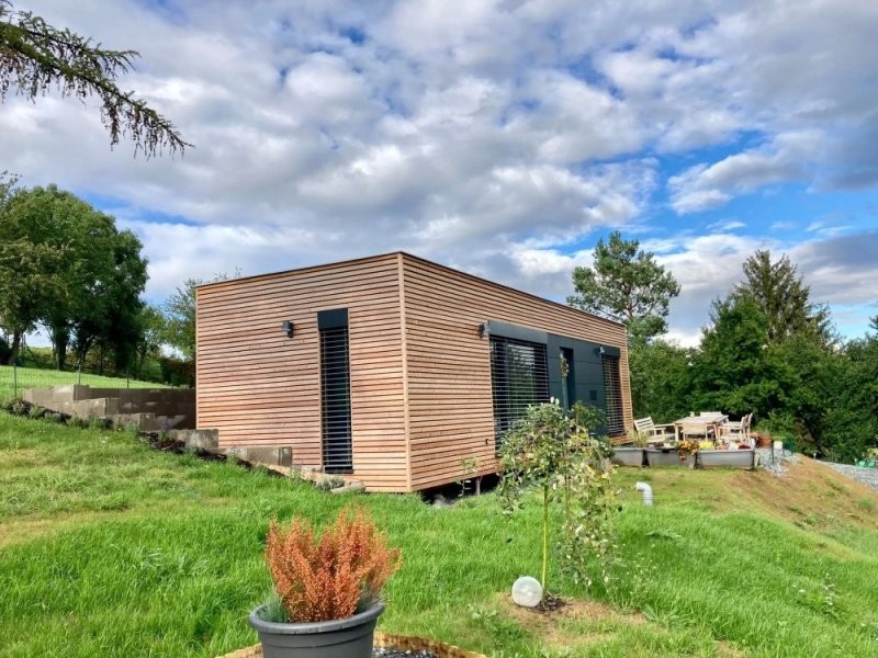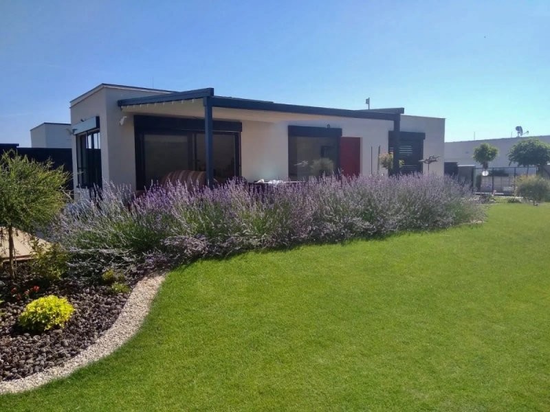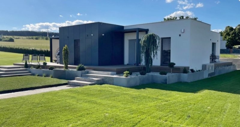 Tento modulární domek jsem i přes nevelikost obce musela chvilku hledat. Nakonec jsem s dotazem na novou dřevostavbu a příjmení majitelky přepadla souseda, soustředěně vytrhávajícího plevel ze své zah
