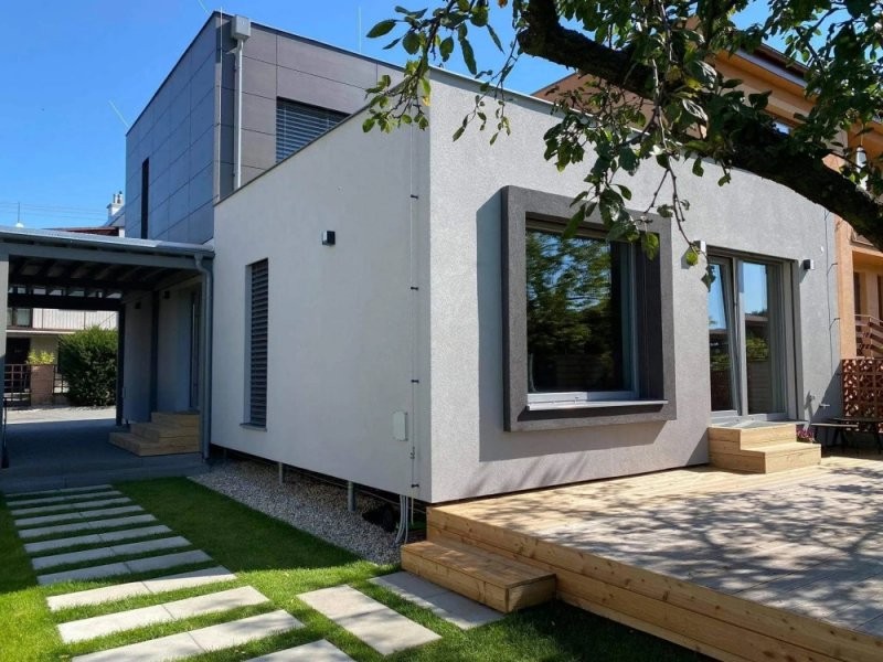 Jedná se o systém panelové dřevostavby. Celá konstrukce je tvořena rámovou skladbou z KVH hranolů, vyplněných minerální čedičovou izolací, a opláštěná velkoformátovou deskou (OSB nebo sádrovlákno, dle typu skladby). Fasádní systém může být kontaktní s omítkou, s dřevěným obkladem nebo v kombinaci. Domy dodáváme ve variantě k dokončení a na klíč. Pro naše klienty zajišťujeme i vnitřní vybavení nábytkem, venkovní terasy k RD a další doplňkové služby včetně projekce.