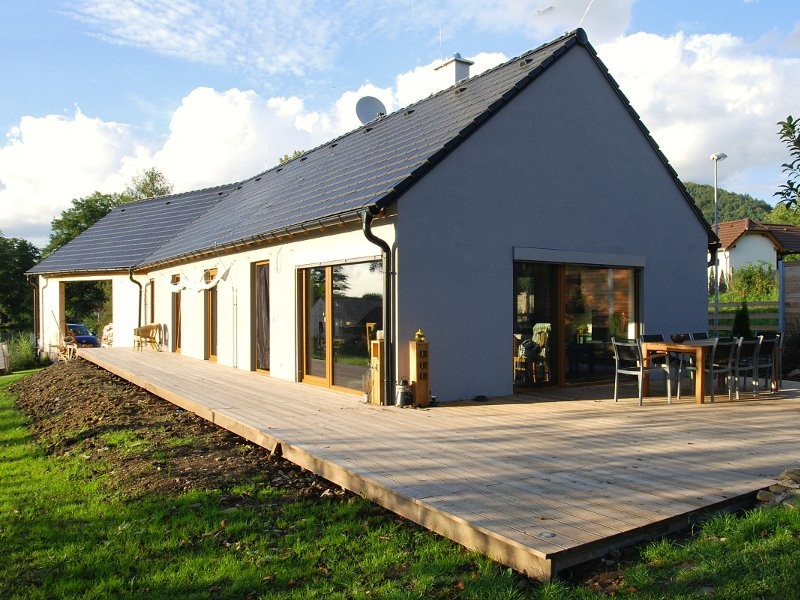 Vnější stěny jsou vyráběny sendvičovým způsobem a jsou dodávány jak v difuzně uzavřeném, tak v difuzně otevřeném systému. Na konstrukci je použito výhradně KVH řezivo.