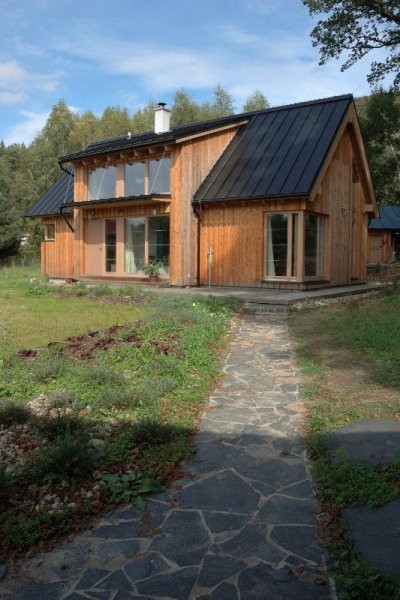 Životní prostor umělců Lindy a Jakuba ovlivnila láska ke dřevu a materiálům v jejich přirozené podobě. Konkrétní obrysy dům získával postupně během tvůrčího procesu s architektem, ale od začátku bylo