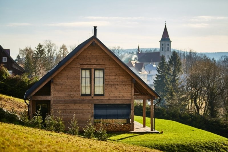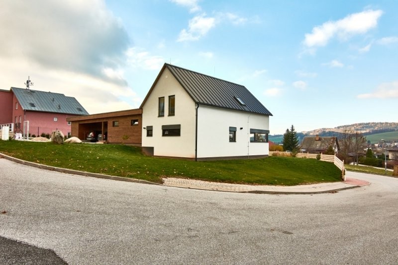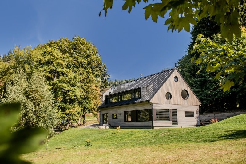 Tak osamělý, jak je to jen možné, a tak společenský, jak je to nutné. Právě tyto dva atributy na mě zapůsobily při pohledu na dům v Jizerských horách. Na první pohled patrné prvky těžkého dřevěného sk