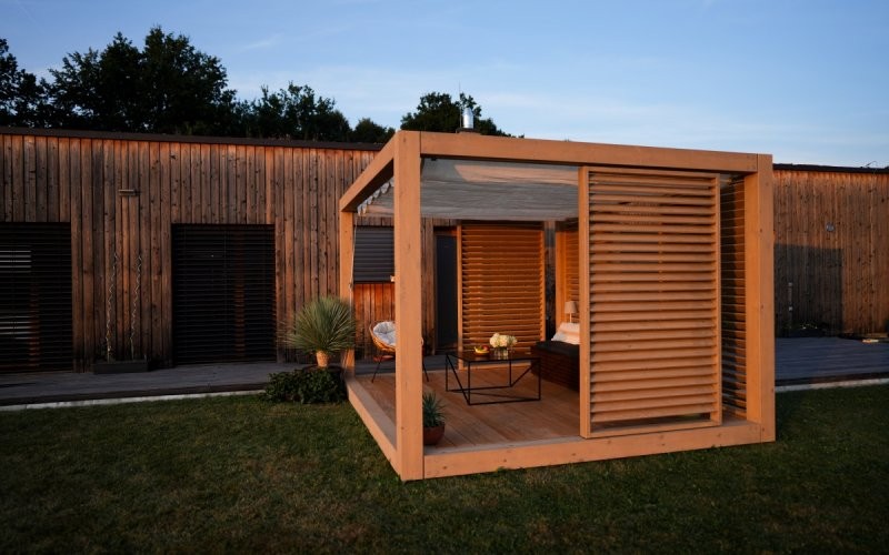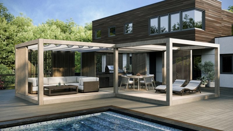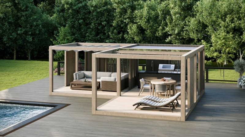 Nabízíme pergoly v moderním kostkovém designu v jedné standardní velikosti. Máte možnost výběru podlahy, střechy, barevné úpravy konstrukce a dalších prvků podle vašich preferencí. Díky modulárnímu systému můžete propojit více pergol a každou vybavit dle vlastních potřeb – ideální způsob, jak vytvořit multifunkční prostor, který splní vaše představy o odpočinku a pohodlí.