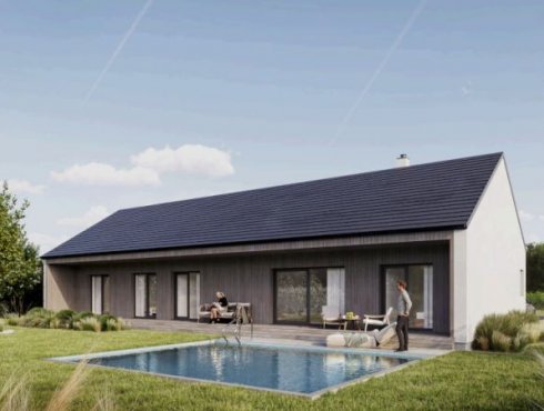 Tento prostorný dům je navržen tak, aby splnil potřeby i větší rodiny. Nabízí tři dětské pokoje, z nichž každý má přímý vstup na terasu, a útulnou ložnici s vlastní šatnou a koupelnou. Srdcem domu je velkorysý obývací pokoj spojený s kuchyní, který tvoří přirozené centrum pro rodinná setkání i chvíle pohody. Díky propojení interiéru s exteriérem se obytný prostor otevírá do zahrady a zve k odpočinku i zábavě.