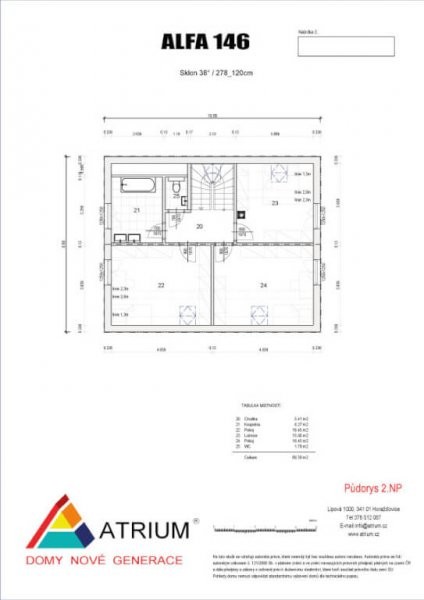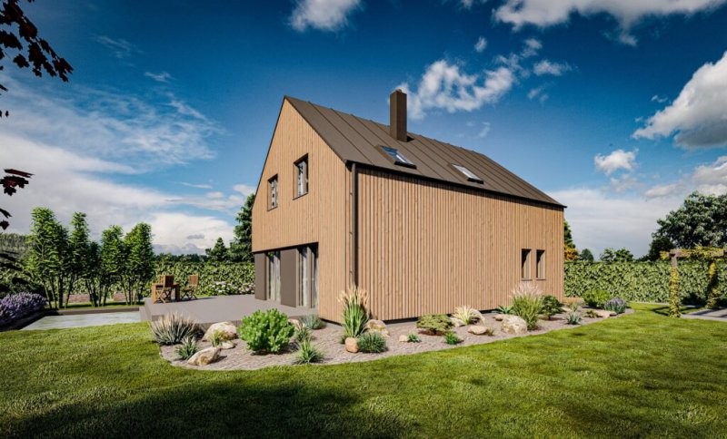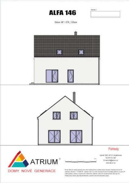 Stále velmi oblíbený rodinný dům se sedlovou střechou s názvem Alfa 146 má své zájemce mezi všemi generacemi. Tento dům doznal již mnoho různě upravených realizací, ale díky svému nadčasovému vzhledu a vnitřnímu uspořádání bude stále žádanou dřevostavbou. V přízemí je zajímavě řešená kuchyň, která má tvar "U". Paní domu má od kuchyňské linky přehled po celém obývacím pokoji. Z tohoto prostorného společného pokoje se projde na venkovní krytou terasu s výhledem na zahradu. V přízemí je pokoj, který si zařídíte třeba jako ložnici nebo pracovnu. V podkroví jsou tři velké ložnice a prostorná koupelna. Alfa 146 bude díky praktickým dispozicím příjemným domovem i pro pěti až šesti člennou rodinu.