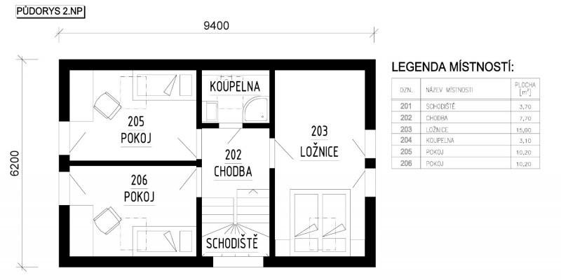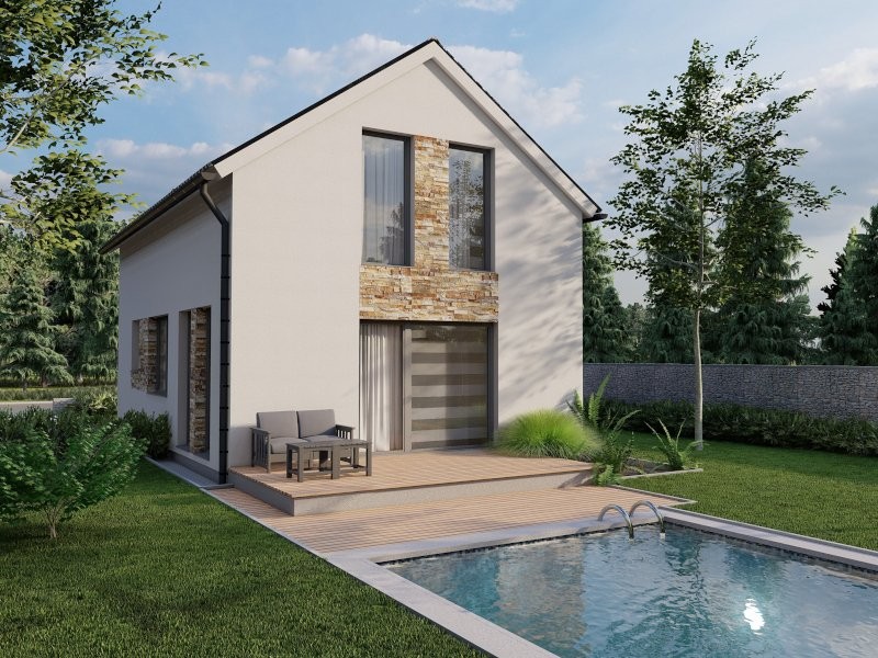 AMBIENT 94 je perfektní řešení nízkoenergetického dvoupodlažního rodinného domu. Minimální zastavěná plocha, která se odehrává na pouhých 58,28 m2 je pouze jedním z mnoha důvodů, proč si zvolit právě tuto dřevostavbu. Komfortních 94 m2 užitné plochy zajišťuje dispoziční řešení 4+1, které je rozděleno mezi dvě podlaží. V přízemí se nachází prostorný obývací pokoj, který umožňuje výstup na terasu a je spojený s jídelnou a kuchyní. Nechybí ani koupelna a sklad. Druhé podlaží, které splňuje nároky na soukromí a klidovou zónu vhodné pro čtyřčlennou rodinu, nabízí dva pokoje o velikosti 10,2 m2 a jednu ložnice o velikosti 15 m2. Na patře se dále nachází i druhá koupelna, která odráží každodenní potřeby rodiny.