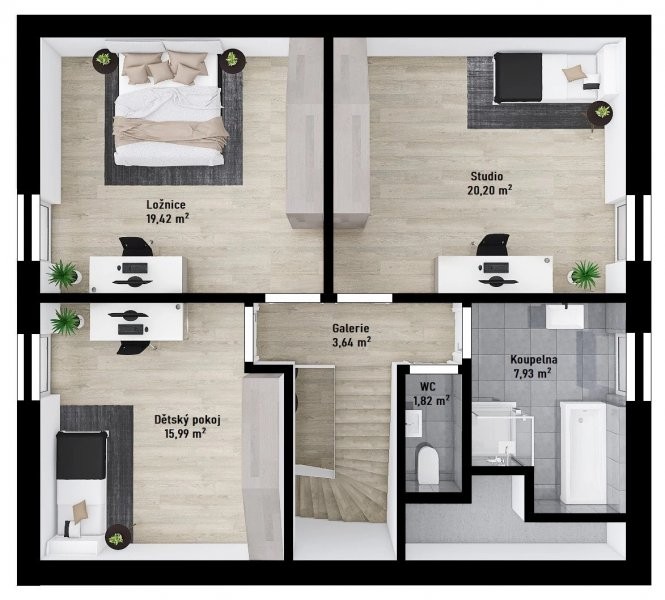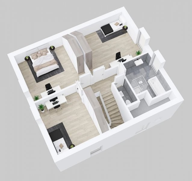 Patrový rodinný dům Avanti 2-147 je ukázkou moderního domu zapadajícího do městské i vesnické architektury. V podkroví jsou pod sedlovou střechou umístěny 3 ložnice, koupelna a samostatné WC. Přízemí ovládá obrovský obytný prostor propojený s kuchyní a jídelnou, doplněný o pracovnu, koupelnu a technickou místnost.