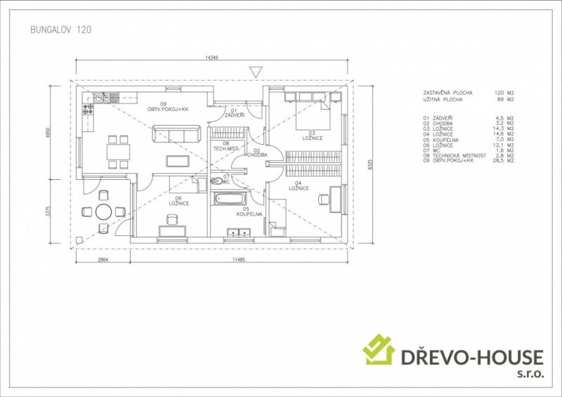 Popis projektu BUNGALOV 120 - dřevostavba na klíč