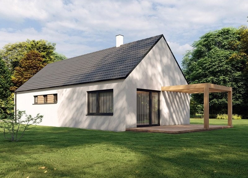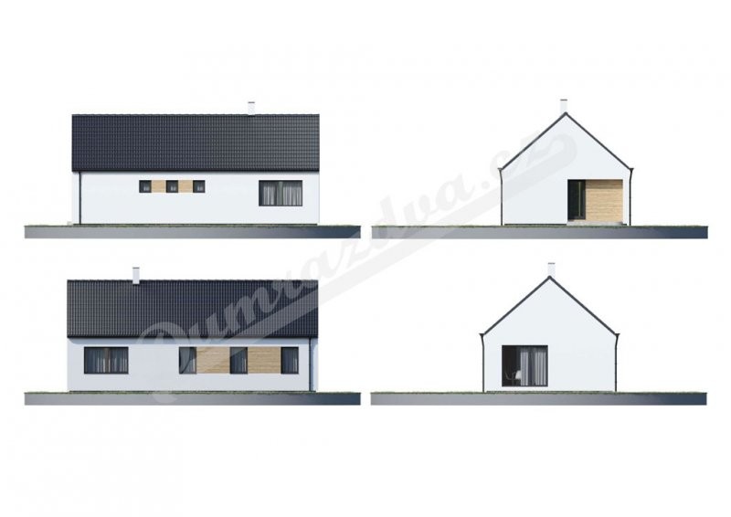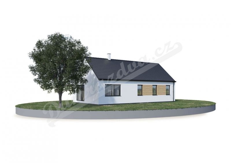 Bungalov J1 je další novinkou. Dům má sklon střechy 35st., bez přesahů do boků domu. Vstup do zádveří je zasunut do hmoty domu a vytváří tak přirozenou ochranu proti dešti. Samotné dispozici dominuje obytný prostor s velikými okny, propojujícími dům se zahradou. Veliké francouzské ono vybízí k vybudování terasy. Obytný prostor spojuje se zádveřím hala, z které se vchází do dalších pokojů a místností domu. Dům má dispoziční uspořádání 4+kk, na zastavěné ploše 98m2.