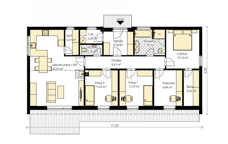 Dům je ideální pro čtyřčlennou rodinu s potřebou samostatného pracovního prostoru.