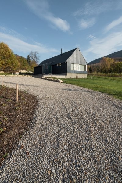 Ráz krajiny pak stavba reflektuje. Na její stavbu byly použity přírodní materiály, které jsou typické pro daný kraj i výstavbu zde. Dřevo, kámen a sklo.