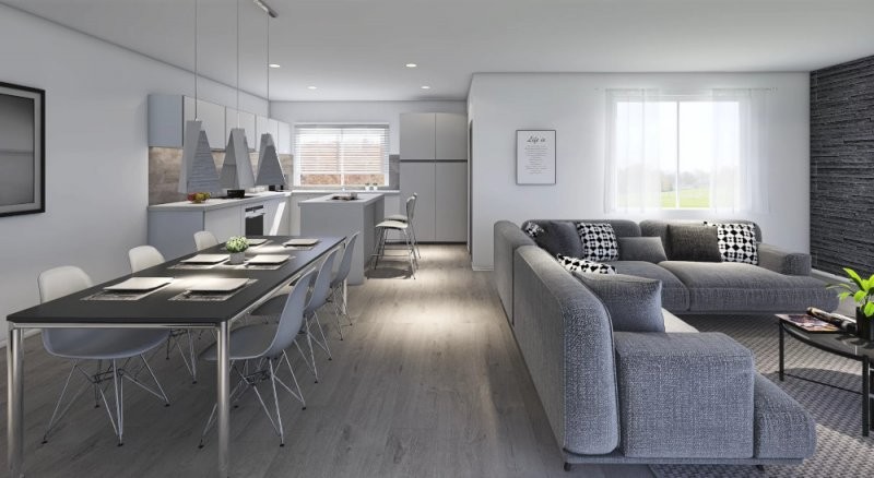 Moderní bungalov o dispozicích 5+kk s velkou terasou a saunou. Dominantou je prostorný obývací pokoj s kuchyňským koutem s velkou prosklenou plochou (HS portál). Ložnice má svoji koupelnu a samozřejmostí je i šatna. Za zmínku stojí i pokoj se saunou, kde je i sprchový kout.