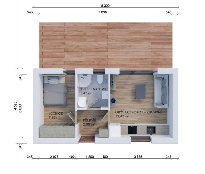 Typová modulová dřevostavba doplňuje řadu malometrážních modulových dřevostaveb využitelných zejména jako chaty, podnikatelské provozovny či bydlení pro jednotlivce. Hodí se na pozemky s omezenou výstavbou.