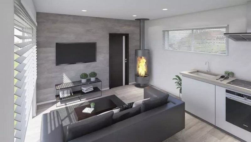 Dřevostavba o rozměrech 12x4m – vhodná pro náročnější zákazníky, kteří chtějí více prostoru za nízkou cenu. Levné, přesto kvalitní bydlení. Easy 48 je nejprodávanější z modulových staveb do 50m2 a je často využíván pro trvalé bydlení 2-4 lidí. Výroba probíhá v hale a dřevostavba je transportována na pozemek jako hotový dům či v případě nepřístupného terénu přímo na pozemku investora. Výstavba 3-4 měsíce od podpisu smlouvy.