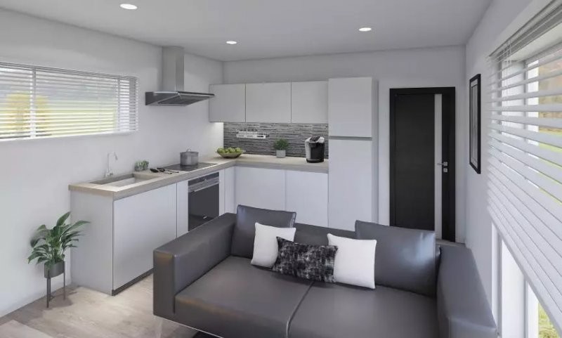 Dispozice: Objekt má jedno nadzemní podlaží s jednou jednotkou 3+kk – vstup, obývací pokoj s kuchyňským koutem, koupelna, ložnice a pokoj.