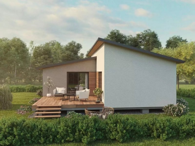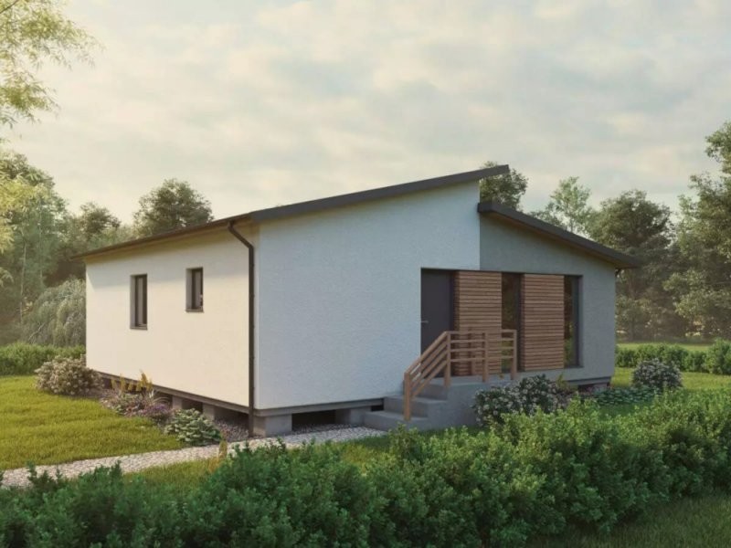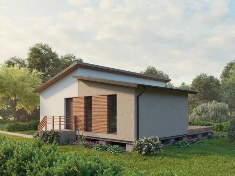 Dřevostavba EASY 72 propojuje oba naše základní typy staveb – modulové, kdy částečně tvoří tvar L se zákoutím a terasou, ale zároveň i klasický obdélníkový tvar staveb a působí kompaktněji než delší, užší moduly. Zajímavý design podporují pultové střechy modulů. Tato dřevostavba nelze převážet a staví se na pozemku investora. Doporučujeme pro 2-3 lidi. Úpravou dispozic je možné docílit i šatny, technické místnosti např. na úkor pokoje a zmenšení koupelny.