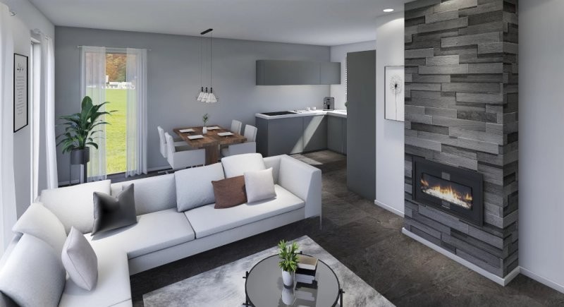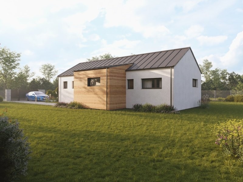 Dřevostavba o podlahové ploše 90m2 . Lze ji ale postavit i ve větším rozměru a podobný půdorys nabízíme i v 96, 107 a 113m2. Jedná se o montovanou dřevostavbu stavěnou na místě se sedlovou střechou ze sbíjených vazníků. Hodí se i do vesnické zástavby. Dispozičně se jedná o 3+kk s praktickou technickou místností. Lze využít i půdní prostor.