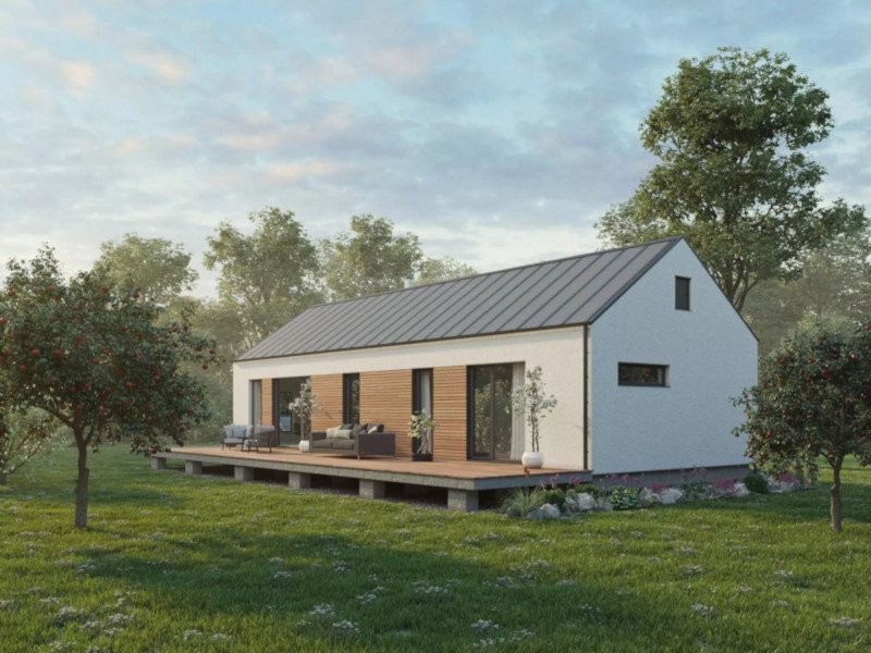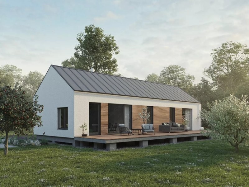 Největší dřevostavba z našich typizovaných montovaných dřevostaveb o podlahové ploše 96m2. Lze ji ale postavit v libovolném rozměru dle požadavků zákazníka. Jedná se o montovanou dřevostavbu stavěnou na místě se sedlovou střechou. Hodí se tak i do vesnické zástavby. Dispozičně se jedná o 4+kk, což je ideální pro prostorné bydlení celé rodiny.