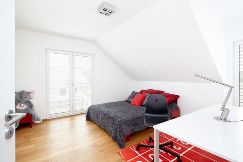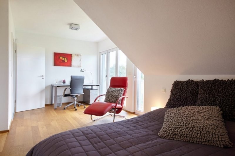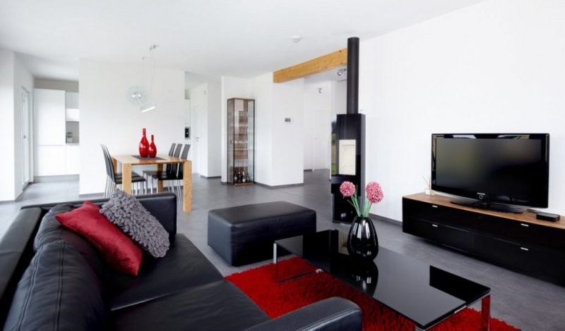Interiér domu začíná prostorným zádveřím, ze které se vstupuje do útulné koupelny pro hosty a obývacího pokoje ze kterého se po schodišti dostaneme do podkroví. Obývací pokoj je spojen s jídelní částí a dá se z něj vejít i do pracovny či pokoje pro hosty.Kuchyň odděluje plná příčka, ale s volným průchodem bez dveří. Z kuchyně je pak přístup do prostorné spíže. V podkroví se nachází soukromá část domu sestávající z ložnice rodičů, dvou dětských pokojů a velké rodinné koupelny ze které se vchází do prostorné technické místnosti spojené s šatnou.