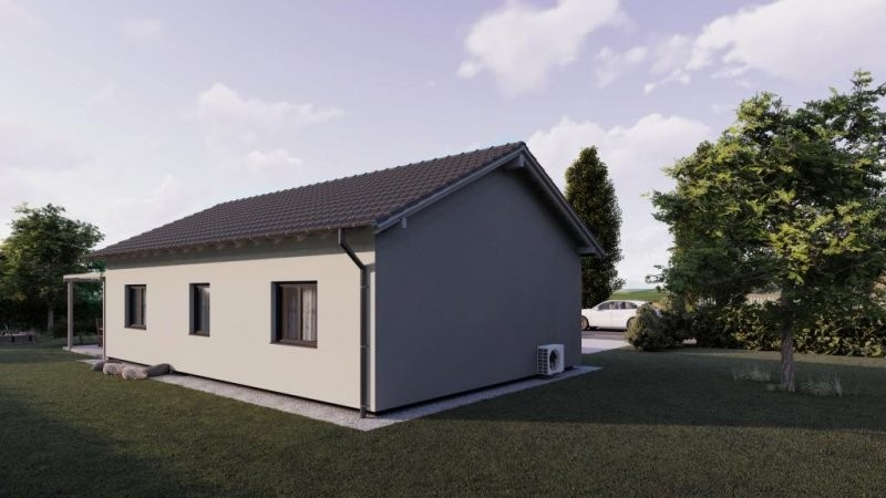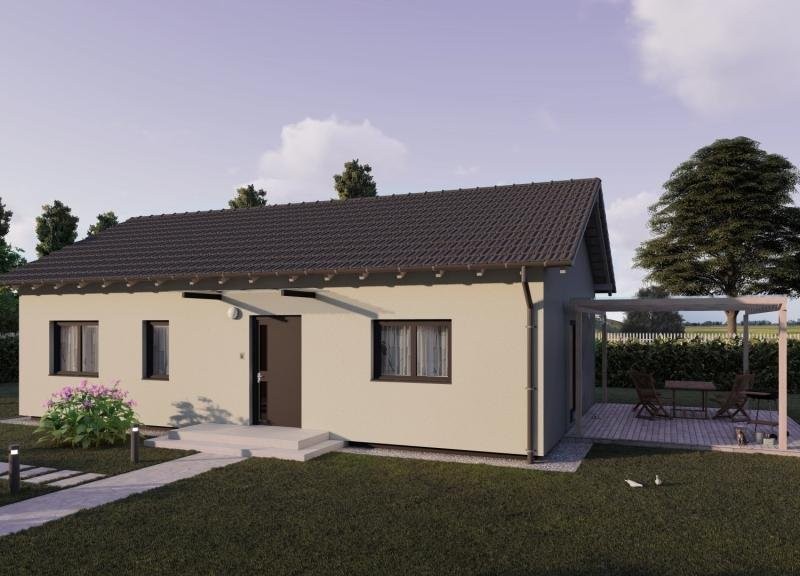 Bungalov s třemi samostatnými pokoji a prostornou kuchyní s obývacím pokojem.