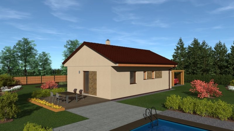 Za příplatek je možno obývací pokoj zvětšit dle přání zákazníka, event. vytvořit částečně krytou terasu. Dům lze realizovat na malých či na úzkých parcelách. V objektu bylo dbáno na vyváženost tepelně technického zpracování a nákladů na zhotovení.