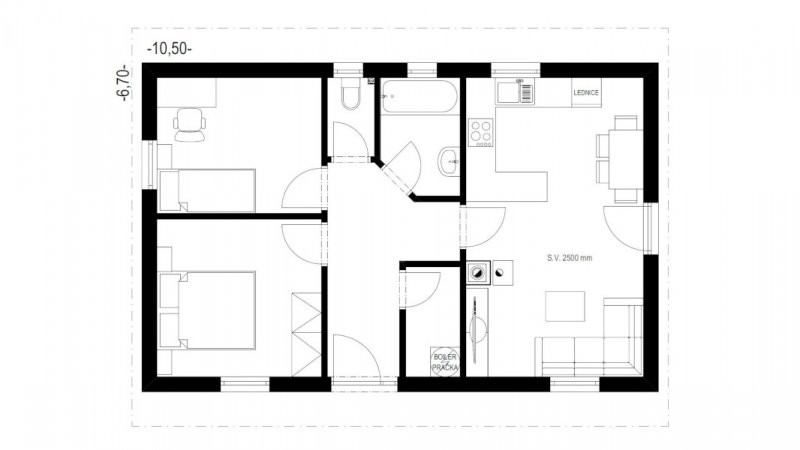 MS 06a Ekonomy je vhodná pro 3-4 osob. Dispozici lze různě upravovat dle přání a možností investora.
