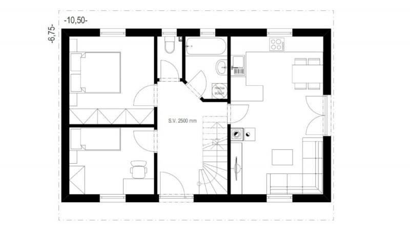 Cena dřevostavby MS 06b Ekonomy obsahuje pouze přípravu pro pozdější vestavbu podkroví.