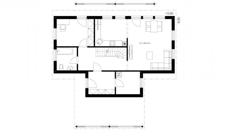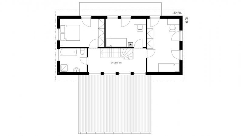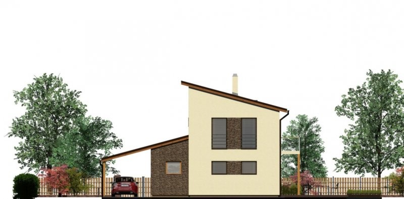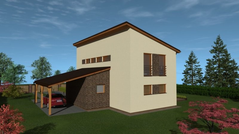Rodinný dům s moderní architekturou o velikosti 5+kk. Zajímavě řešený obytný prostor s integrovanou kuchyní a jídelnou. Dvě koupelny, šatna a kryté stání doplňuji komfort domu. Zajímavým řešením je využití vyšší výšky dětského pokoje pro spaní ve druhé úrovni. Pokud by tento pokoj byl využit k jiným účelům lze takto vytvořený prostor využít jako např. další úložný prostor.