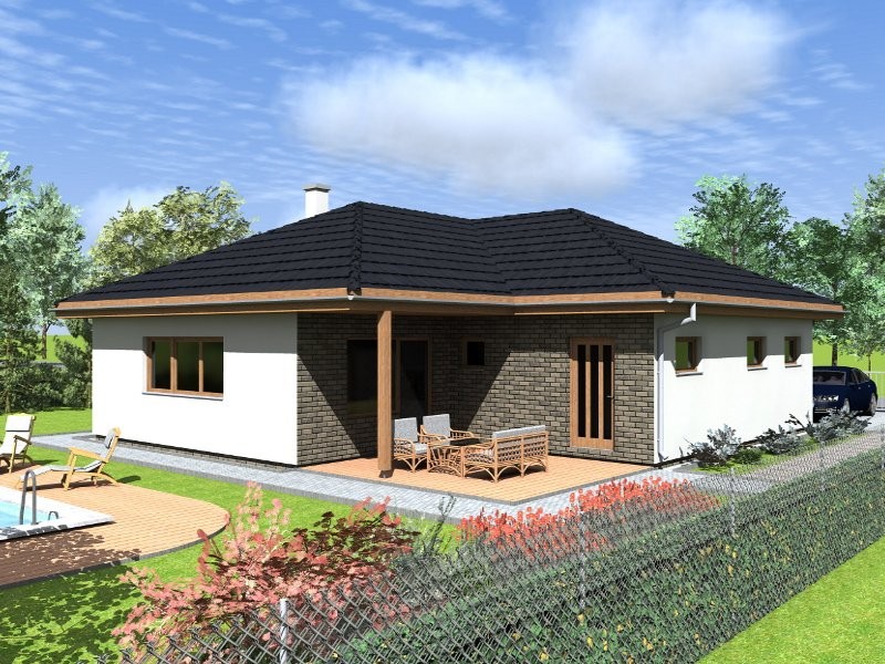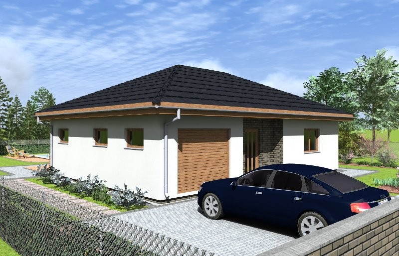 Prostorná dřevostavba na klíč s bohatým zázemím. Dřevostavba MS 17 Ekonomy je prostorný dům s bohatým technickým zázemím, který splňuje požadavky na komfortní bydlení většiny rodin. Po vstupu do dřevostavby Vás uvítá prostorný vstup, kde je možné oblékání do kabátů i většího počtu jeho obyvatel. Dále je ze zádveří přístupná i technická místnost a garáž propojená s malou, ale praktickou dílnou pro běžného kutila, nebo zázemí pro zahradní nábytek a zahradní nářadí. Páteřní komunikaci dřevostavby tvoří přes obývací pokoj dobře prosvětlená chodba, ze které zpřístupněny všechny pokoje, koupelna a WC.