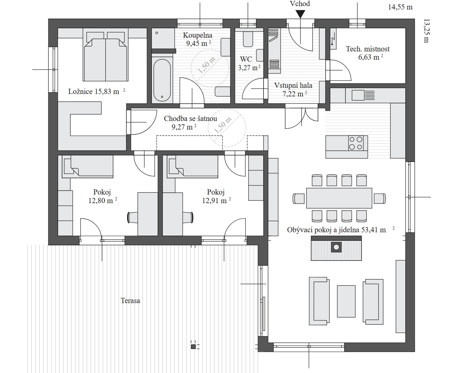 Dům Elegance 130 splní nejen vaše nároky na praktické bydlení, ale zároveň vás okouzlí svým elegantním vzhledem a promyšlenými detaily. Dá se také upravit podle vašich konkrétních požadavků. Dispozice domu je bezbariérová.
