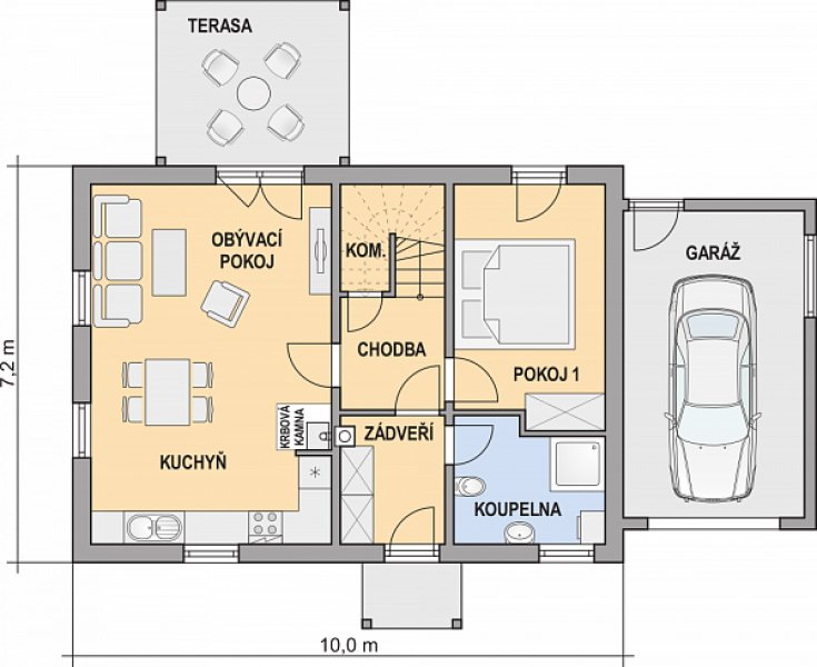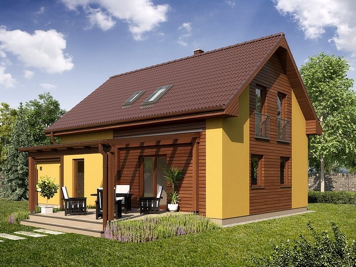 ELIŠKA je dům střední velikostní kategorie s garáží a pergolou • vhodný do dvoupodlažní zástavby • uspokojí 4 – 5 členné rodiny • pokoj v přízemí může sloužit jako pracovna, pokoj pro hosty, případně jako dětský pokoj • noční část domu je osazena do podkroví.