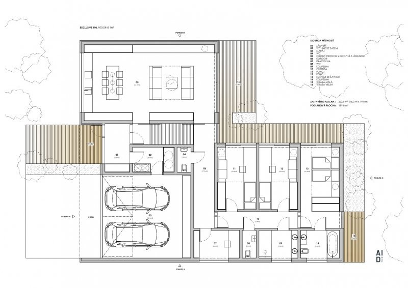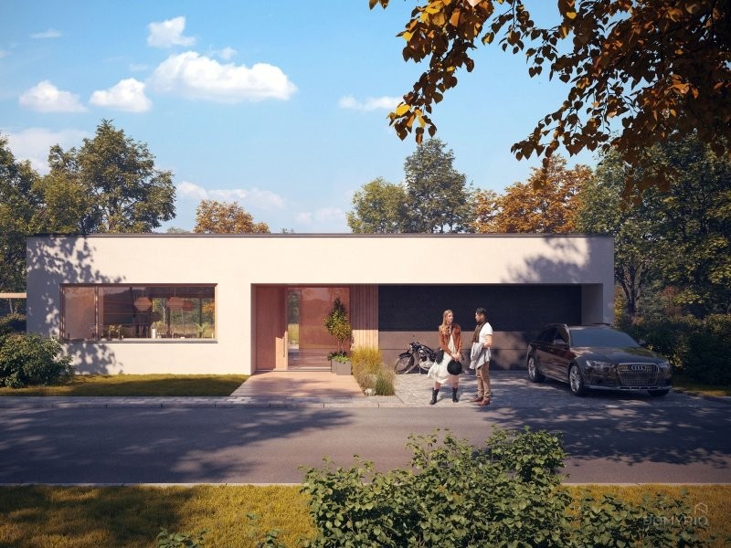 V této dispozici si každý najde to svoje. Dvojgaráž se samostatným vstupem do domů, obývací pokoj s výhledy do zahrady a celkové propojení ložnic a obytné části při zachování soukromí rodiny.