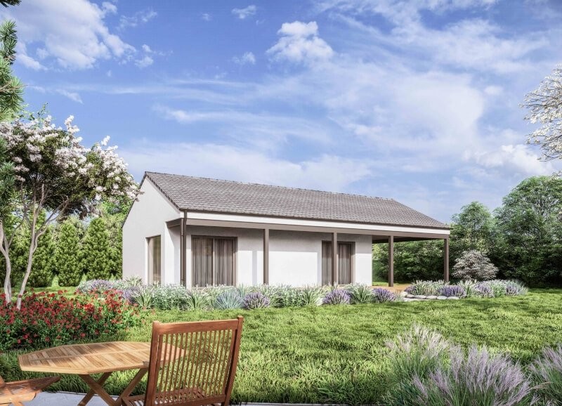 Dřevostavba 2+kk má obdélníkový půdorys o rozměrech 6 x 10,3 m. Interiér má promyšlené dispoziční rozdělení domu na společenskou a klidovou. Nevyhovujeme vám půdorysné řešení? Upravíme celý dům podle vašeho přání.
