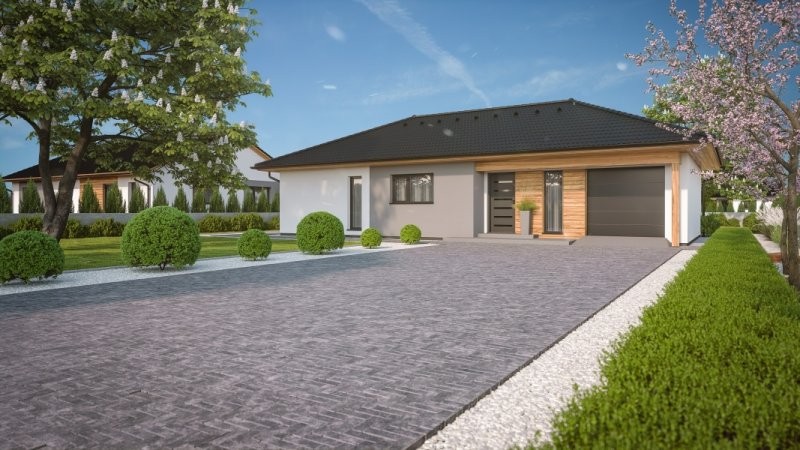 Bungalov Instinkt 1-108 nabízí na zastavěné ploše necelých 150 m2 kromě čtyř pokojů a kuchyňského koutu také prostor pro koupelnu, technickou místnost a sklad. Srdcem bungalovu je obývací pokoj s kuchyňským koutem a jídelnou, s pohodlným přístupem přímo na terasu. Součástí domu je navíc garáž.