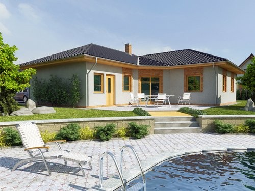 Nádherná, atypicky řešená dřevostavba na klíč pro větší parcely. Je velmi žádaná, existuje v mnoha variantách.