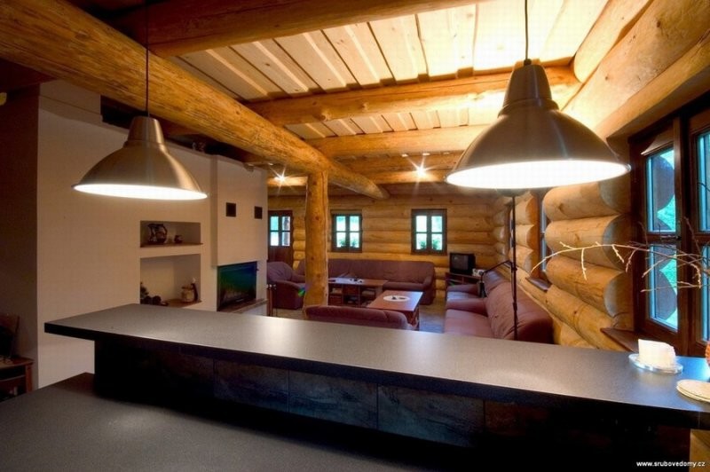 Srubový dům KAREL je určený pro bydlení až 6-ti členné rodiny, nebo k rekreačním účelům až 14-ti osob. V přízemí dřevostavby jsou obvodové stěny i vnitřní příčky tvořeny ze smrkové ( dle přání modřínové nebo borovicové) kulatiny, které svou přirozenou křivostí překrásně vyzdvihují teplo domova. Pouze příčky v koupelně u WC a ložnice jsou tvořeny z Ytongu. Vstup do dřevostavby je možný jak do chodby z boku domu, nebo z čela přímo do obývacího pokoje, který je svou velikostí a otevřenou vrchní galerií nejpůsobivější dominantou domu. V podkroví srubu se nachází malé WC s malou místností a dvěmi velkými pokojemi. Příčky u malého pokoje a WC jsou tvořeny z palubkové (sádrokartonové) konstrukce.