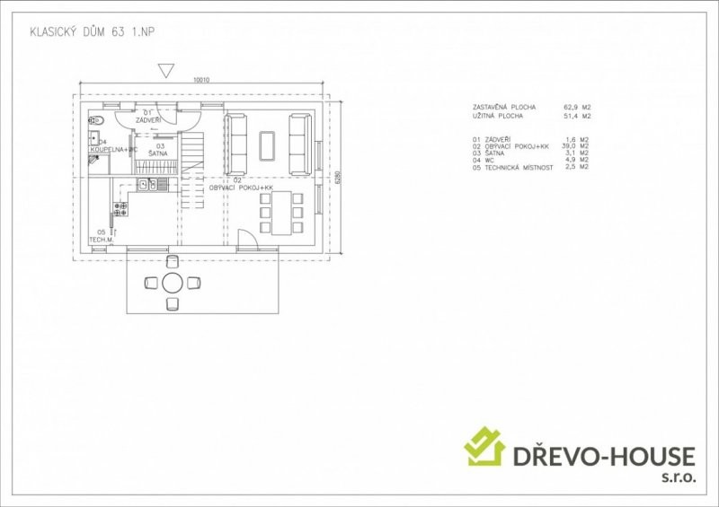 Nízkoenergetický klasický dům 63 potěší každého, kdo hledá otevřené vzdušné prostory. Dům je přízemní s podkrovním bydlením. Kdy dominantou spodního patra je velký obývací pokoj s prostorově umístěným schodištěm, které dokresluje moderní pojetí domu. Podkroví je řešeno 3 prostornými ložnicemi, včetně sociálního zázemí.