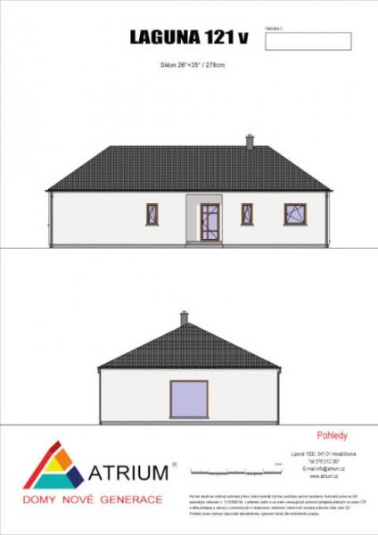 Laguna 121 je moderní dřevostavba. Bungalov 5+kk má zajímavě řešený půdorys. Nabízí vstup do zahrady francouzským oknem z každého pokoje. Obývací pokoj je společná místnost s kuchyní a jídelním stolem. V bungalovu je pracovna či pokoj pro hosty a ložnice má svou vlastní samostatnou šatnu. Dům Laguna nabídne komfortní bydlení pro 4člennou rodinu a i tento dům může být bezbariérový.