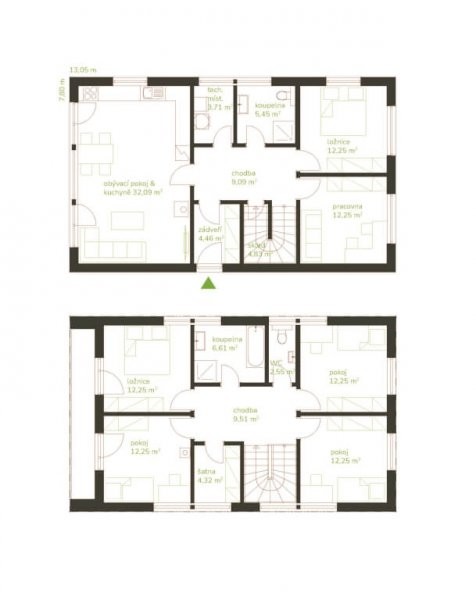 Celkem sedm místností ve dvou podlažích nabízí kromě estetických hledisek dostatek prostoru a pohodlí pro velkou i vícegenerační rodinu. Dům nabízí rozsáhlé obytné prostory, včetně ložnic s vlastními koupelnami, šatny, pracovnu. Moderní technologie, jako jsou chytré domácí systémy, zabezpečovací systémy a energeticky úsporná řešení, mohou být na přání klienta integrovány do designu domu.